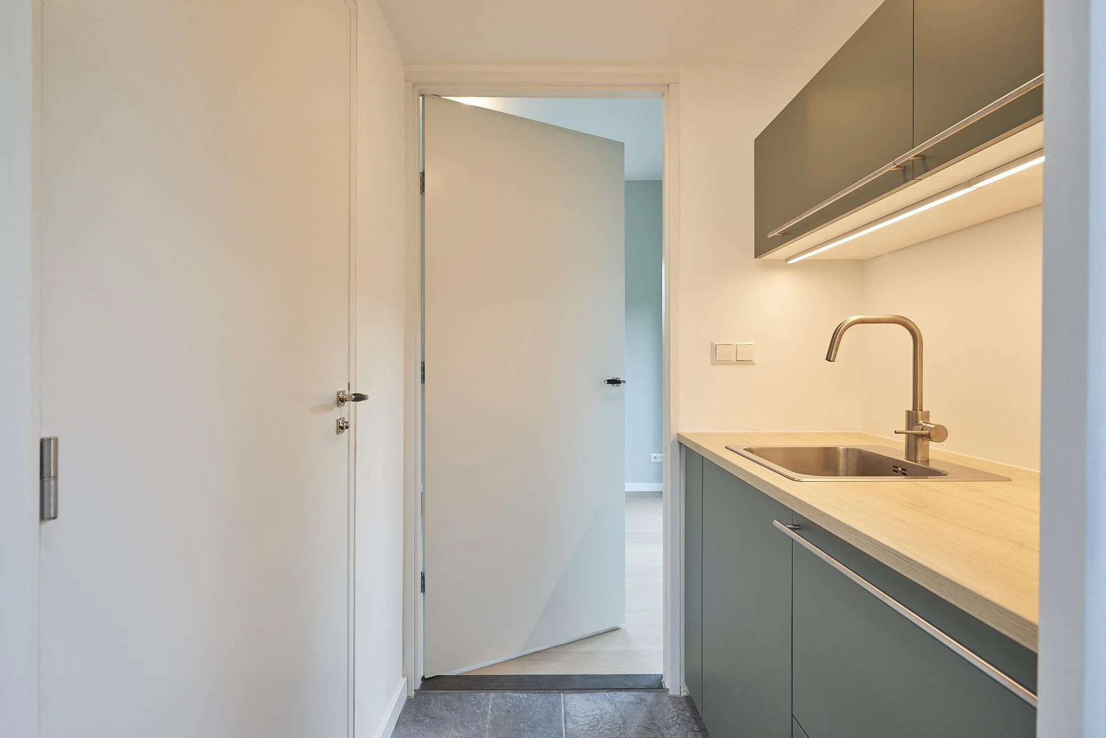 Een goede basis is essentieel voor elke ruimte, en daarom hebben we de volledige vloer geëgaliseerd. Dit zorgt voor een stabiele ondergrond en maakt het plaatsen van meubels of werkstations eenvoudig en probleemloos. Verder werd er een compact WC- en keukenblok geïnstalleerd, compleet met een eigen boiler en energiezuinige LED-verlichting. Deze toevoeging maakt de ruimte autonoom en handig voor dagelijks gebruik, zonder dat je telkens terug hoeft naar de hoofdwoning.
